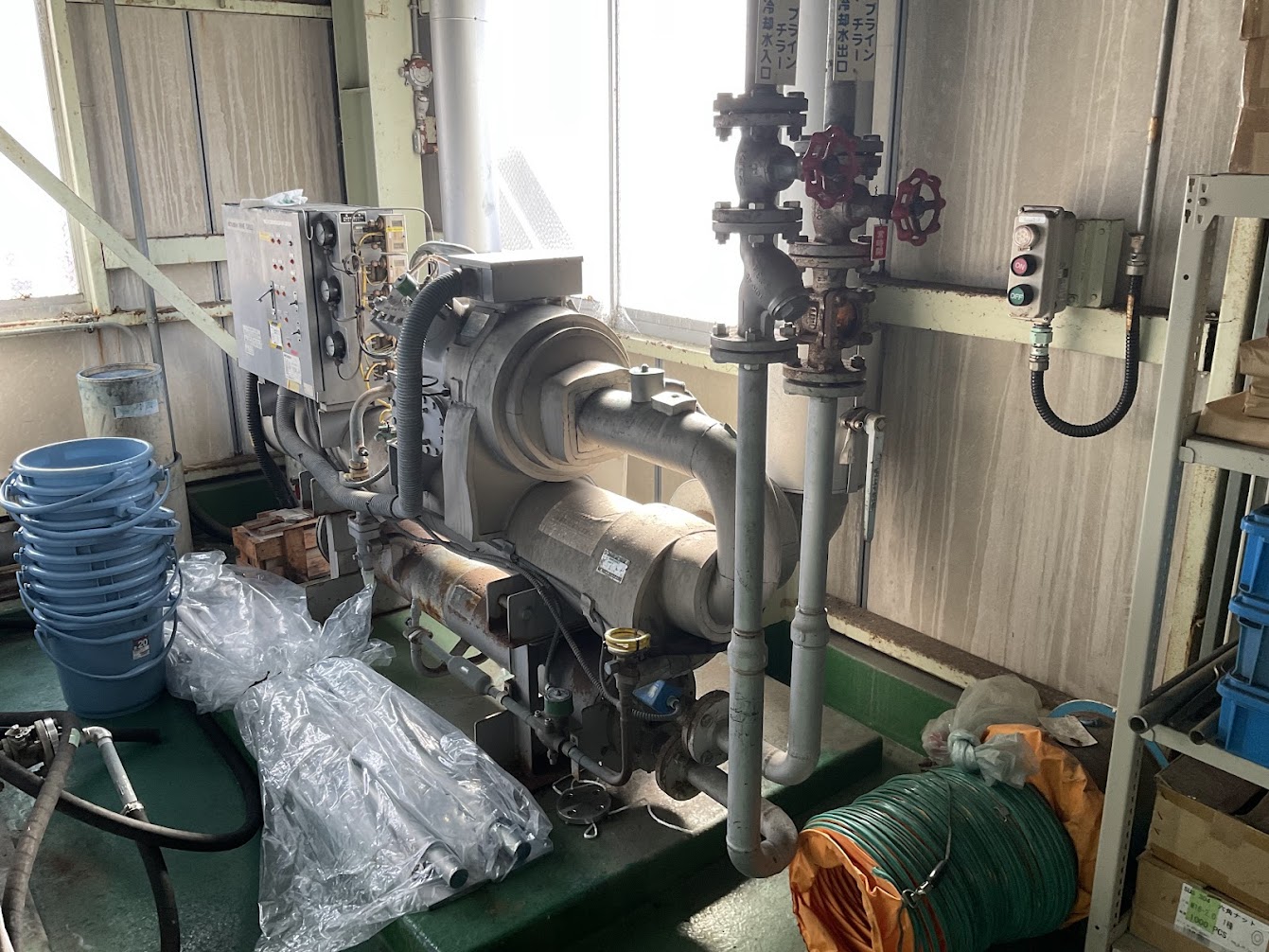 ブラインチラー更新工事 施工カテゴリー 設備修理・機器設置 設備修理・機器設置 コメント 冷媒ガス回収 電気配線更新 配管更新 保温更新 本体更新工事を行いました。 三菱製チラーを20年使用していたが、故障してしまった為更新となりました。 日立製ブラインチラーを提案し省スペースとリモコン操作対応できる機種に更新しました。 詳細画像 施工事例一覧に戻る CONTACTお問い合わせ お電話でのお問い合わせ TEL.053-461-3178 月曜~金曜 8:30~17:00 フォームでのお問い合わせ お問い合わせフォーム印刷用インキ・周辺材料に関するお問い合わせはコチラのフォームからお願いいたします。 CLICK